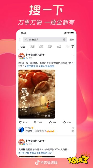 抖音极速版是一款非常火热的原创短视频分享平台,这里的短视频全部都是原创作品,超多原创效果、滤镜、场景切换等元素帮你把视频一秒变大片,吸引更多的人的关注,刷视频有红包,快来下载官方最新版吧。