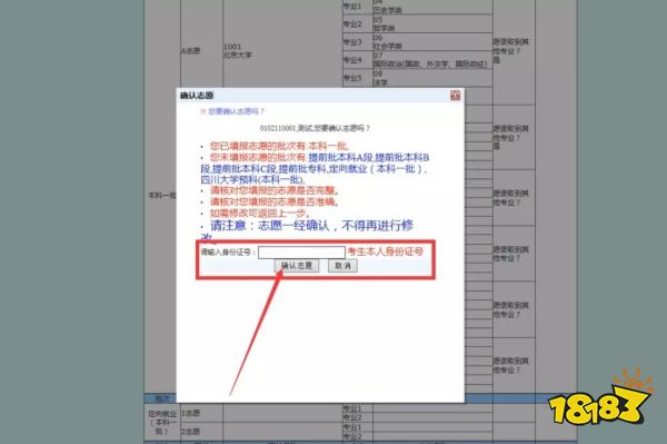 3、在弹出页中填写身份证号,点击“确认志愿”。志愿“确认”成功后将会看到“您的志愿已经‘确认’成功”的字样。如果未看到上述信息,说明志愿未确认成功,需要考生重新确认。
