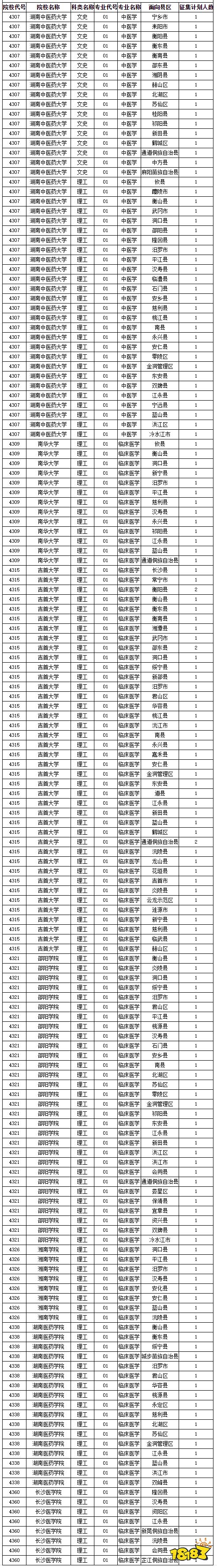 湖南省2020年农村订单定向免费本科医学生征集志愿计划