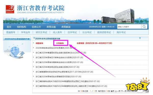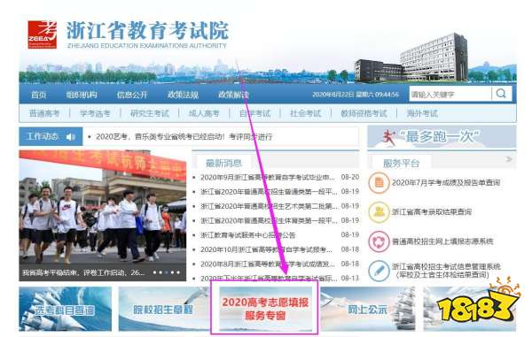 第一步,进入浙江省教育考试院官网,点击首页“2020高考志愿填报服务专窗”。
