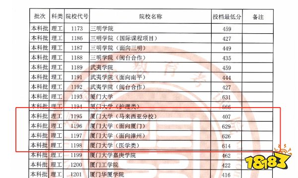 1)407分考生“捡漏”厦门大学马来西亚分校。
