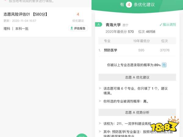 考生在填报志愿时,最害怕被大学退档或是调剂到自己不喜欢的专业。在圆梦志愿APP上,大家可以添加备选专业,准确测出你被该院校专业志愿录取的概率是多少,并且给出相应的优化建议,让你更准确清晰地了解到正式填报志愿时要注意的问题。