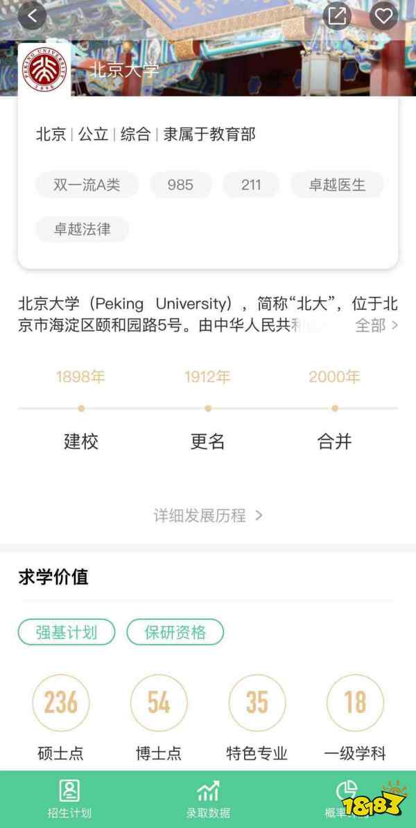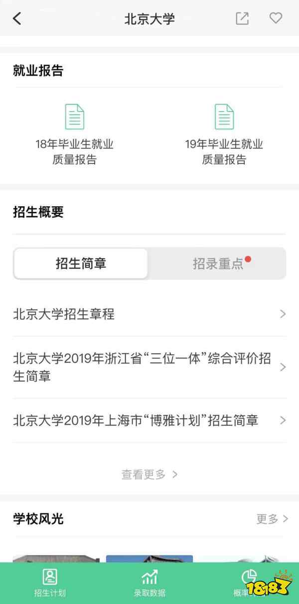 圆梦志愿app包含了2600多所大学的基本情况(学校概况、发展历程、求学价值、就业报告、招生简章等),以及近三年的分数情况(最低分、平均分、录取位次、线差等);考生或家长再也不用去翻阅厚厚的书,可以在搜索框中输入想了解的院校,一键了解学校所有信息。