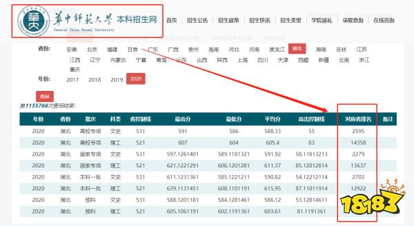以为例,我们可以通过学校的本科生招生网查询不同招生批次的对应省排名,即最低录取位次。