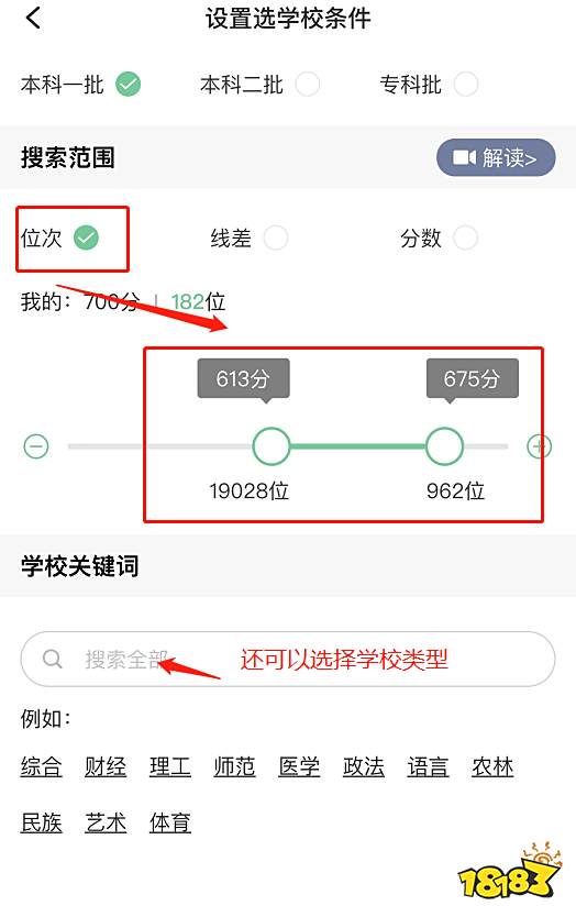 (4)调整到自己想查询的位次区间,点击确定即可。