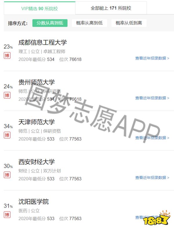 当考生输入分数后,机构或者是APP应该快速反馈出200个左右备选的高校,如果做不到这点,那么代表这个机构的数据库是完全不支持这个业务的,也容易让考生错过部分高校信息。