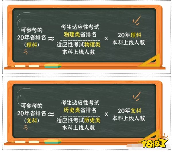 考生本人成绩换算为2020年分数后,才能进一步参考去年的可报考院校,换算公式如下: