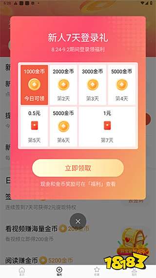 4、每天看剧达到一定时间可以获得金币,累积到一定数额就能体现,新人朋友还有七天签到福利