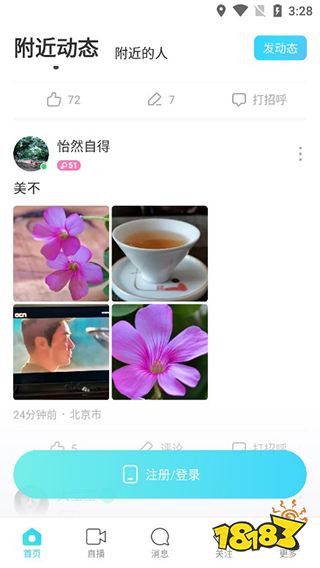 4、还可以查看到附近的动态,看看其他人发布的图文内容。