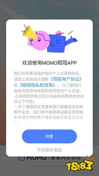 1、下载安装本站提供的陌陌交友app,进入软件之后需要同意用户协议;