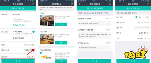 ①店铺信息 — ②资质信息 — ③收款信息 — ④实名认证