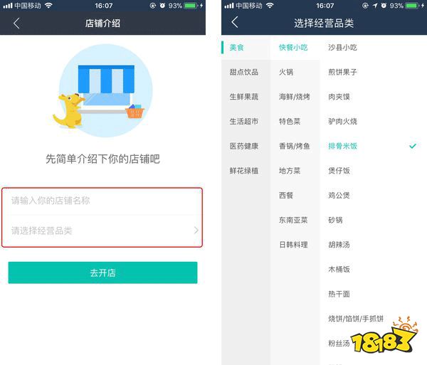 3、上传资料前需填写店铺名称及真实经营品类,美团外卖覆盖多种品类,确认后点击#去开店#。