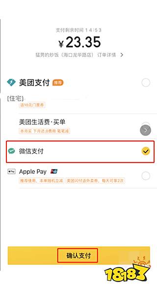 5、选择支付方式,微信、银行卡、以及美团闪付都是可以的,然后进行‘结算’,整个下单流程就结束