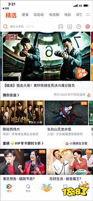 2、然后会看到首页、热点、会员、diki、个人中心五个板块,其中在首页中包含了精选、爱看、哈哈哈、电视剧、动漫、电影、综艺频道等诸多频道;