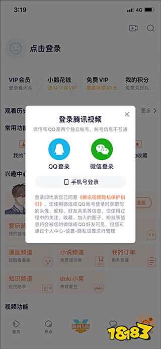 1、在本站下载安装运行腾讯视频,使用微信、QQ、手机号等方式进行登入;