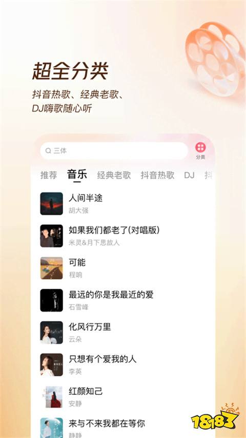 抖音热歌、经典老歌、广场舞、华语流行、DJ、轻音乐、儿歌,各种品类应有尽有。