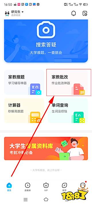 1、打开作业帮app,进入首页,点击打开“家教批改”