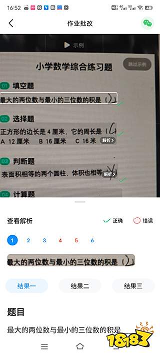 4、等待片刻后即可快速批改作业,且对各个题目进行详细的答案解析