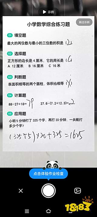 3、对准家教作业进行拍摄,手机平行于纸面可更容易识别