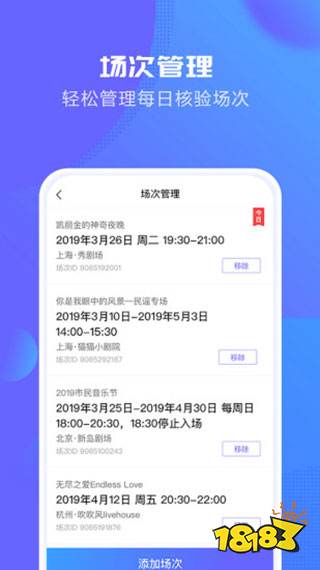4、管理场次加验票一体化,随时随地都能知晓场次情况。