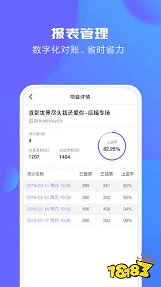 4、提供智能的数据报表,各个场次的上座率自动更新。