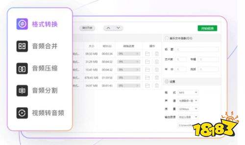 一键转换:选择输出格式后点击“开始转换”,3秒内完成单音频处理,批量任务自动分步执行。