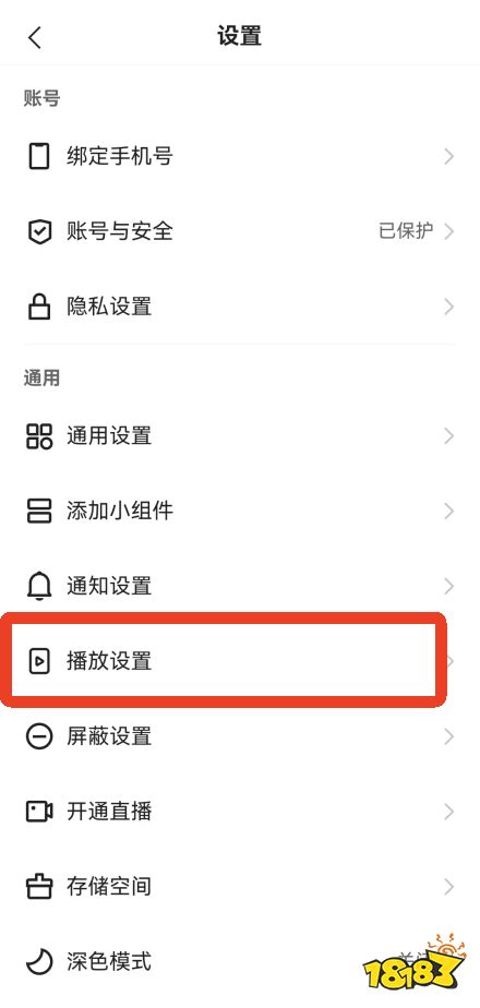 3、在【通用】这一栏下面有个【播放设置】,点击它。
