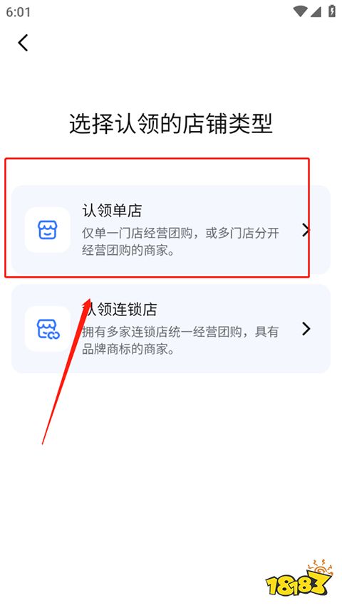 2、然后选择认领的店铺类型。