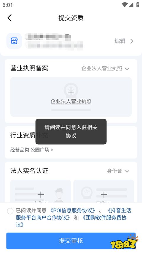 4、最后上传营业执照备案、法人实名认证材料,点击【提交审核】即可。