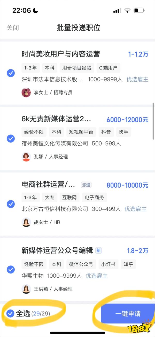 3、智联招聘是我用起来最便捷的一个投递软件。这30家投完你换个关键词,比如用户运营,再批量全选投递,又投30家,这样一天可以投200多家。面试其实不只是被筛选,我们求职者也在积极地利用这个机会去完善自身,把经验迁移到更需要的地方。