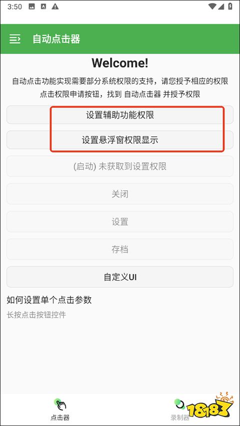 1、进入软件内我们先来授权,根据需求给与无障碍和浮窗权限。