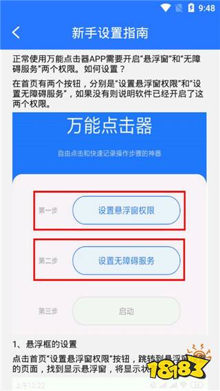 2、您可以观看app提供的新手设置指南,这样就知道如何设置点击器的内容