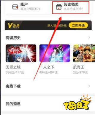 可以看到,每阅读10分钟漫画可以领取20阅点,每周最多领取120阅点