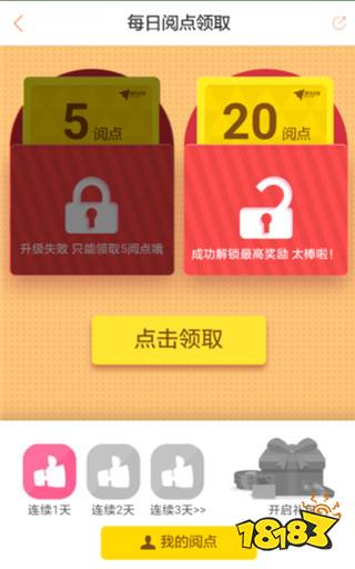 5、第三种是连续三天领取阅点,会有礼包领取,该礼包是随机的,我领取过1个阅点,2个阅点,也领取过5个的。