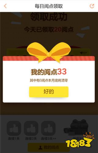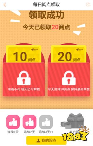 4、如果昨天消耗了阅点,则今天领取的是20阅点,如图所示。