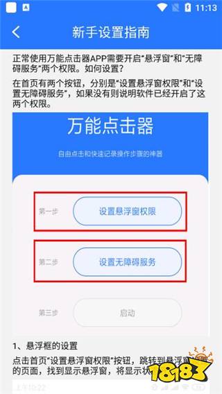 2、您可以观看app提供的新手设置指南,这样就知道如何设置点击器的内容