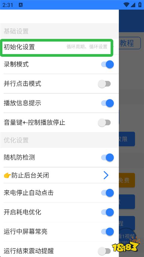 1、打开万能自动点击器连点器App,点击左上角三横线标识。