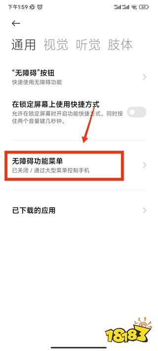 3、在通用页面中,找到无障碍功能菜单并点击;