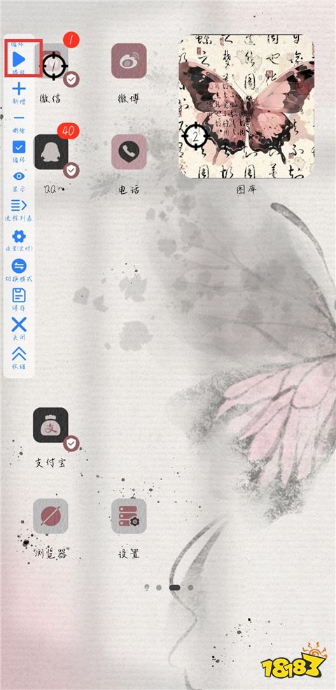 10、然后回到桌面,点击点击【播放】就可自动进行点击了。