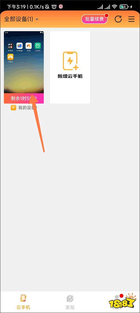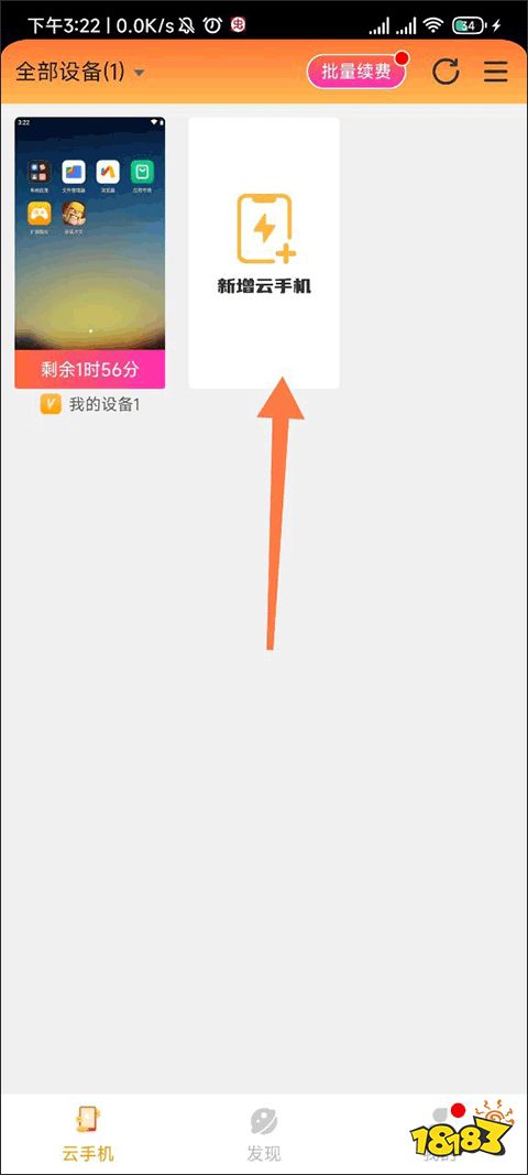 首先进入雷电圈手机app,点击新增云手机来新增一个,小编就用自己之前新增好得给大家看。