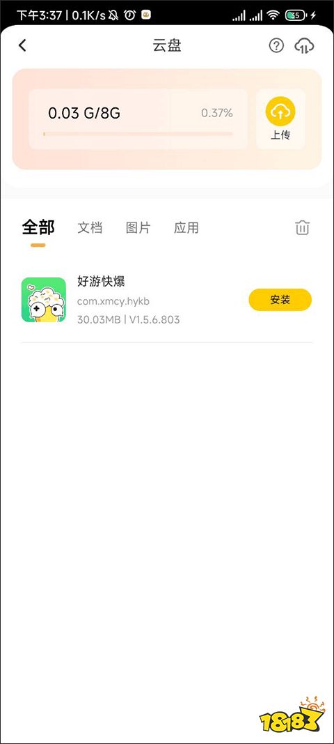传好了你就可以在云盘界面中看见我们的上传的软件安卓包了,然后我们点击安装就可以把app安装在我们的云手机上了。