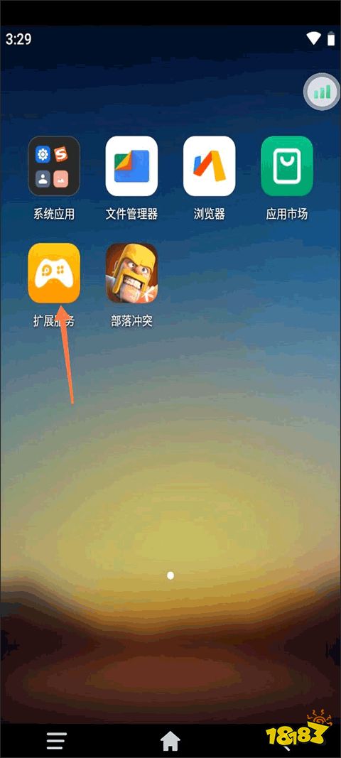 我们先进入到云手机的界面,可以看见我们桌面上有一个拓展服务,点击它。