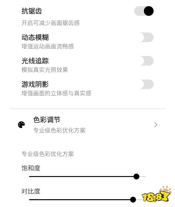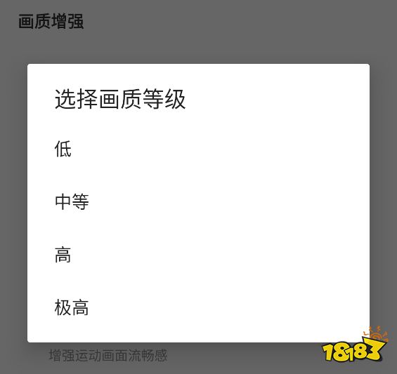 2、点击画质增强里的画面配置,会出现画质等级、帧率目标和优化模式。