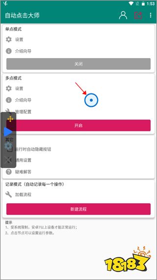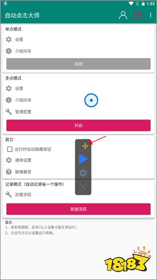 3. 悬浮窗小巧可拖动到角落,不挡视野,点击间隔自由调节,既不会太快也不会太慢,运行两周很稳定。