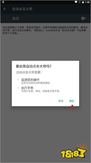 (1)打开app之后页面上弹出了一个小窗口,上面显示“此应用需要激活无障碍服务才能正常工作……”,看完就可以点击下方的“确认”按钮;