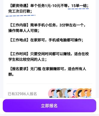 今天我们组吃了一顿饭,在饭局上,有人说起今年工作不是那么好找,反正就是瞎聊。说起工作的话题,我想起了之前自己找工作的经历,也不能说是找工作吧。就是在学校里面,想做一些东西,挣一些额外的收入来补贴自己。当时出于学校的我,找兼职能想到的方法,就是利用一些app,可以说没有什么经验和人脉。懒人兼职其实就是这样的app,给大家提供一个空闲兼职的平台,但我看了一眼,发现了里面非常熟悉的一个小兼职——手机做小...