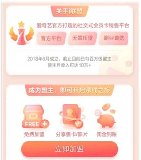 我们在平时没事的时候,总喜欢看短视频,如果感觉自己的闲余时间长点,会选择一个电影来看,看电影的平台有很多。今天给大家推荐一个即可看电影,又可以赚钱的软件:爱奇艺。 怎么推广爱奇艺赚钱?爱奇艺有个i盟主中心,是爱奇艺官方打造的社交式会员卡销售小程序,只要做会员卡的推广和影片推广,用户推广能赚佣金,成立于2018年6