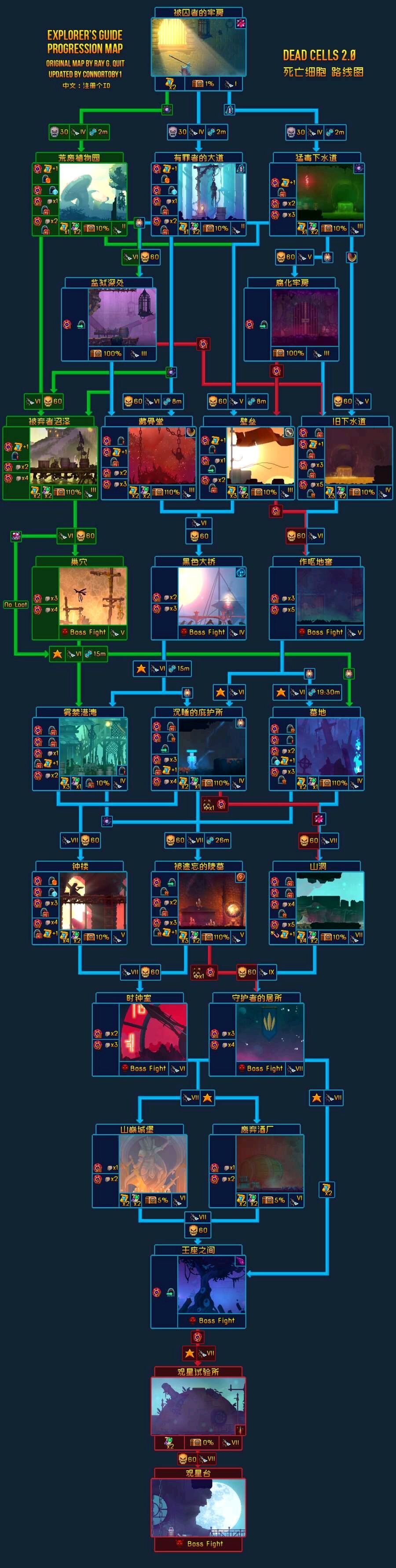 这样前两关压力小很多,而且还可以多开一个时限门(旧下水道没有时限门),这也是收集所有月光花钥匙的路线(有罪者大道三朵玫瑰,壁垒、墓地、陵墓的隐藏区域各用玫瑰换一朵月光花,城堡隐藏区域开门拿诅咒减半的突变)。