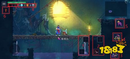 这个看图片其实很好理解,依次是目前剩余细胞数量、目前拥有金币数量以及目前总计死亡次数。细胞可以通过杀敌、细胞罐和宝箱获得,用于解锁收藏家处的物品功能。而金币可以通过击杀敌人、捡宝石、卖东西以及遗产继承获得,可以用来打开金币门、重铸武器道具、重置变异以及在商店购买装备道具等。