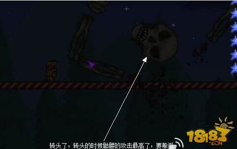 骷髅的主要攻击有两种:挥动手掌,转头,转头的攻击力最高,但是形式单一,比较容易用远程武器进行攻击